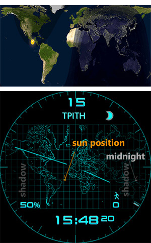 I always wanted a watch showing suns position and night shadow on a flat earth map.