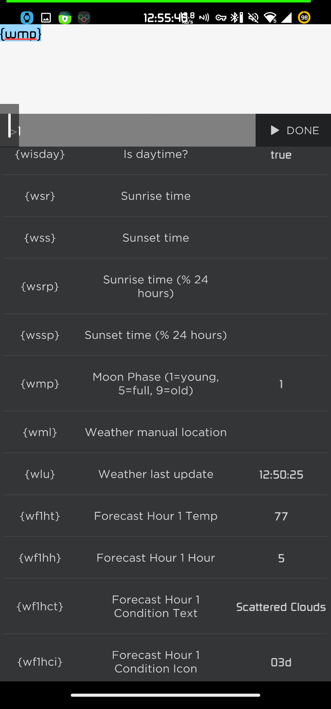 Not sure what ancient watchmaker version are you using, the one I use is not latest either because can’t find crack and are too lazy to crack my self(and the latest have a bug the watch face can not change to square), but it already have {wmp} tag so no need for the math